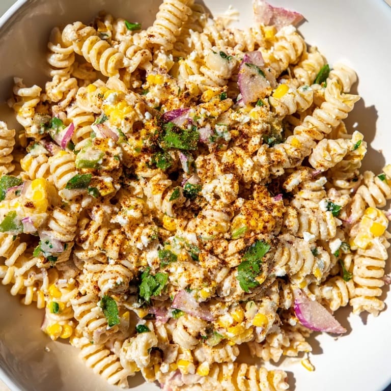 Save There's something about the smell of charred corn hitting hot cast iron that pulls me right back to a street market in Mexico City, where vendors were grilling elote and wrapping them in foil. I came home obsessed with recreating that magic, but in salad form for summer dinners when I wanted something fresh that didn't require standing over a stove. This pasta salad became my answer—it has that creamy, tangy, slightly spicy soul of street corn but works as a whole meal or side that actually improves if you make it ahead.