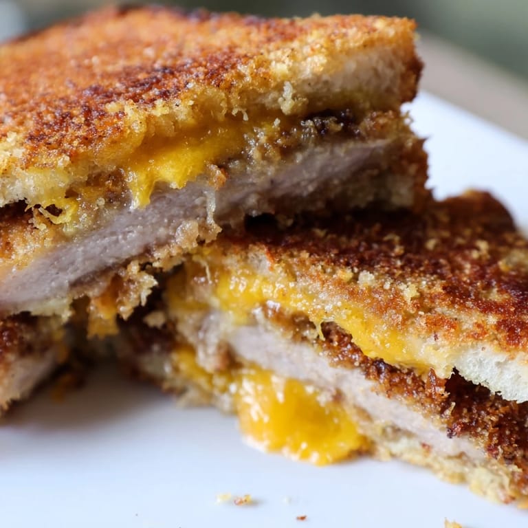 Save There's something about the sound of panko crackling in hot oil that makes me pause everything else in the kitchen. One Saturday afternoon, I was supposed to make a simple grilled cheese for lunch, but I had leftover pork chops and the urge to do something ridiculous with them. The result was this sandwich—crispy, juicy, melty, completely over-the-top—and I've been making it ever since whenever I want to feel like I'm treating myself right.