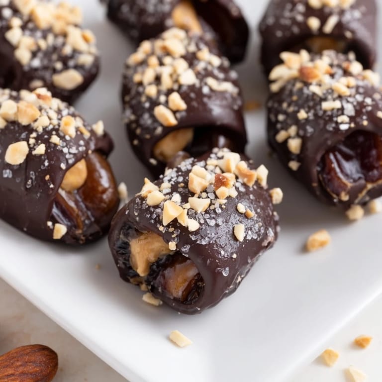 Dates are basically nature's candy, naturally sticky and sweet without tasting processed. Peanut butter adds protein and a savory depth that keeps the whole thing from being one-note sugary. The chocolate acts as both a binder and a contrast, snapping when you bite into it before melting on your tongue. That combination of chewy, creamy, and crisp is exactly what makes a Snickers so craveable, and you get it here without any artificial anything.