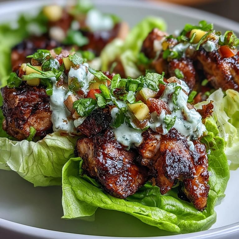 Save My neighbor Marcus brought over a container of jerk chicken one Tuesday evening, and I watched him assemble it into butter lettuce leaves like he was performing some kind of culinary magic trick. The way the mango salsa glistened against the crispy greens, how the coconut crema pooled just enough to catch the light—I knew immediately I had to learn this. What started as a casual weeknight snack became my go-to when friends drop by unannounced, because there's something about a fresh, handheld bite that feels both elegant and impossibly easy.