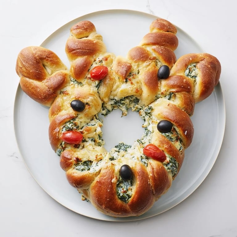 Save A festive, savory pull-apart bread shaped like antlers, filled with creamy spinach dip. Perfect for holiday gatherings or themed parties.