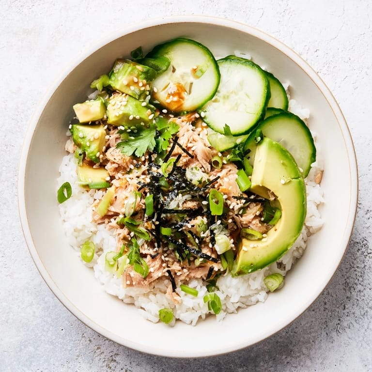 This bowl is best eaten fresh, but you can prep the components ahead if you're meal planning. Store the cooked rice, dressed tuna, and chopped veggies separately in the fridge for up to two days. When you're ready to eat, warm the rice, assemble everything, and add the avocado and dressing right before serving. The avocado will brown if you cut it too far in advance, so save that step for the last minute.