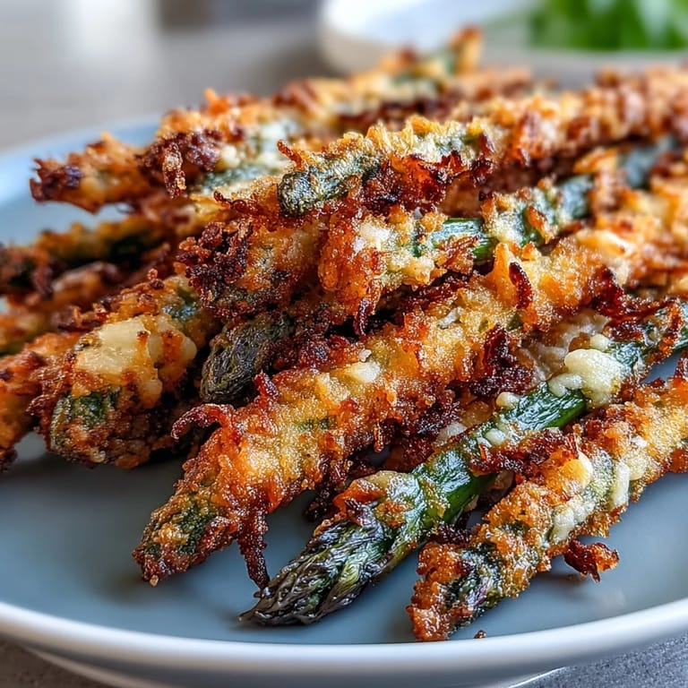 Save My roommate showed up with a bag of asparagus one spring evening, saying she'd impulse-bought it but had no idea what to do with it. We were craving something crispy and indulgent, but didn't want to deep fry anything in her tiny kitchen. That's when I remembered a trick my mom used for vegetable sides—coating them in seasoned breadcrumbs and baking until they shattered under your teeth. Twenty minutes later, we were dunking golden spears into homemade sriracha mayo and wondering why we'd never thought of this before.