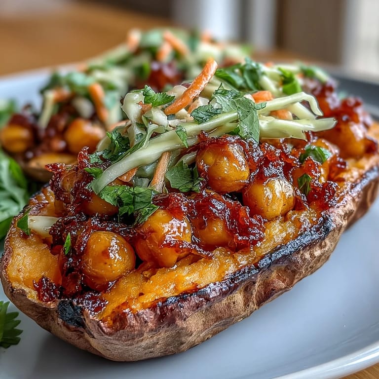 Save I discovered this combination completely by accident one weeknight when I had roasted sweet potatoes sitting on the counter and a can of chickpeas that needed rescuing from the back of my pantry. My roommate had left some BBQ sauce in the fridge, and I thought, why not throw it all together? Twenty minutes later, I was eating something so satisfying that I forgot I wasn't eating meat. The slaw came later—a crispy, tangy counterpoint that made the whole thing feel intentional rather than improvised.